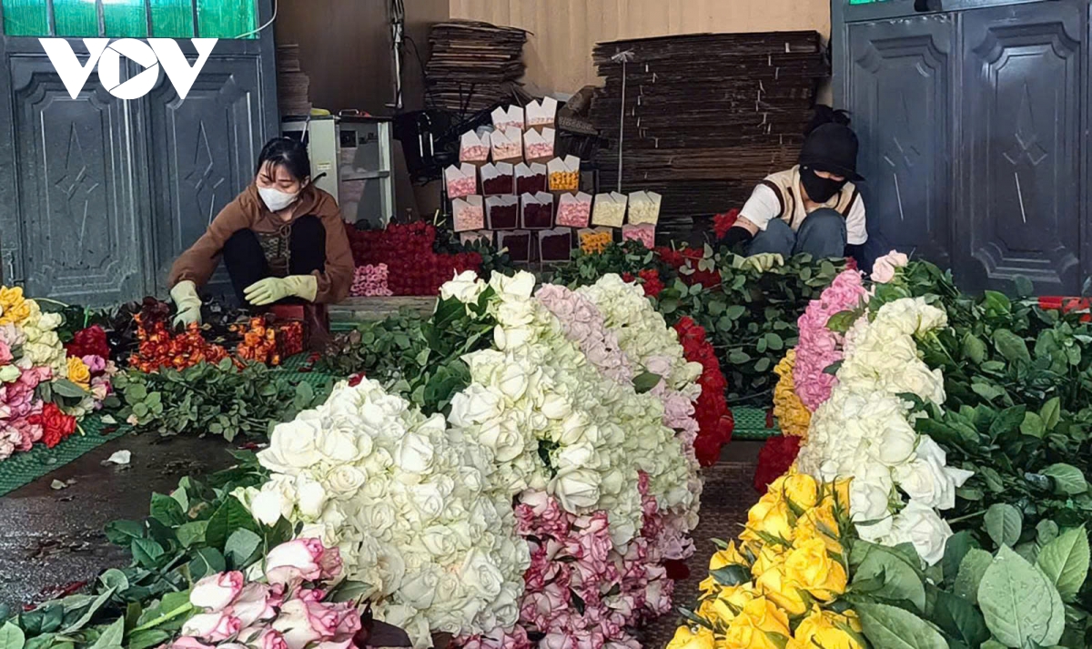 Hoa hồng Lang Biang được phân loại theo màu sắc và chất lượng ngay sau khi cắt để chuẩn bị đóng gói và đưa đi tiêu thụ.