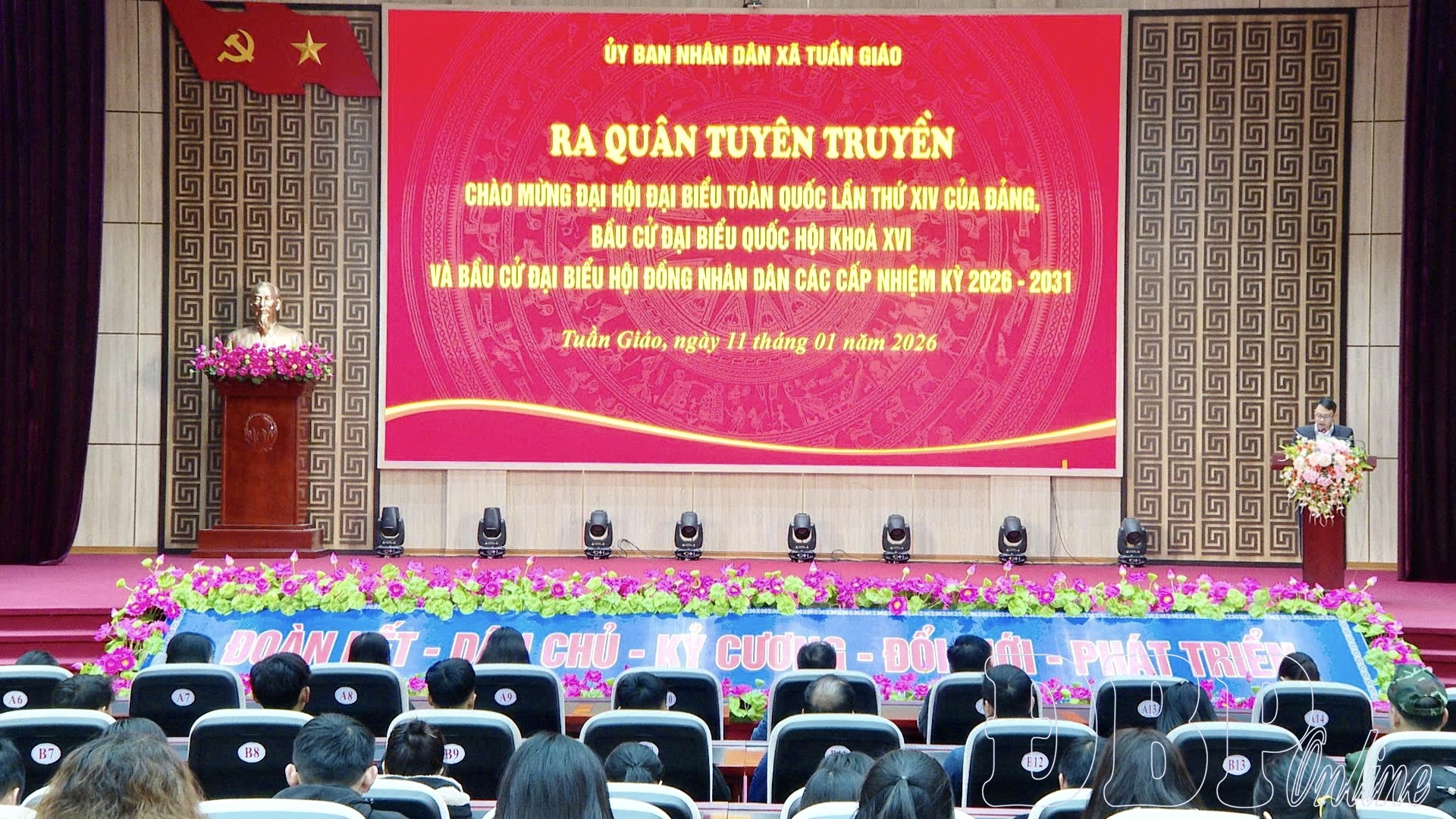 Phát biểu tại buổi lễ, lãnh đạo xã Tuần Giáo nhấn mạnh: Đại hội đại biểu toàn quốc lần thứ XIV của Đảng và cuộc bầu cử đại biểu Quốc hội khóa XVI, đại biểu HĐND các cấp nhiệm kỳ 2026 - 2031 là những sự kiện chính trị đặc biệt quan trọng của đất nước, có ý nghĩa sâu sắc đối với sự phát triển trong giai đoạn mới. Đây là dịp để toàn Đảng, toàn dân và toàn quân tiếp tục củng cố niềm tin, phát huy tinh thần đoàn kết, thống nhất, hướng tới mục tiêu xây dựng đất nước phát triển nhanh và bền vững.