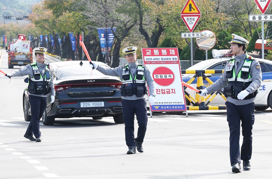 Cảnh sát Hàn Quốc bảo đảm an ninh cho Diễn đàn Hợp tác Kinh tế châu Á - Thái Bình Dương lần thứ 32 tại thành phố Gyeongju (Hàn Quốc). Ảnh: TTXVN