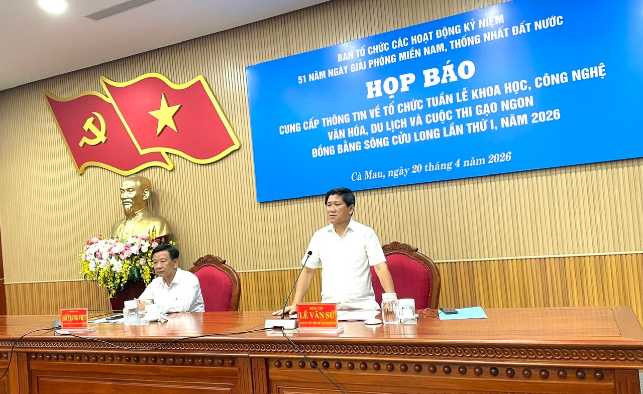 Ông Lê Văn Sử, Phó chủ tịch UBND tỉnh Cà Mau phát biểu tại cuộc họp báo ngày 20/4 - Ảnh: H.B