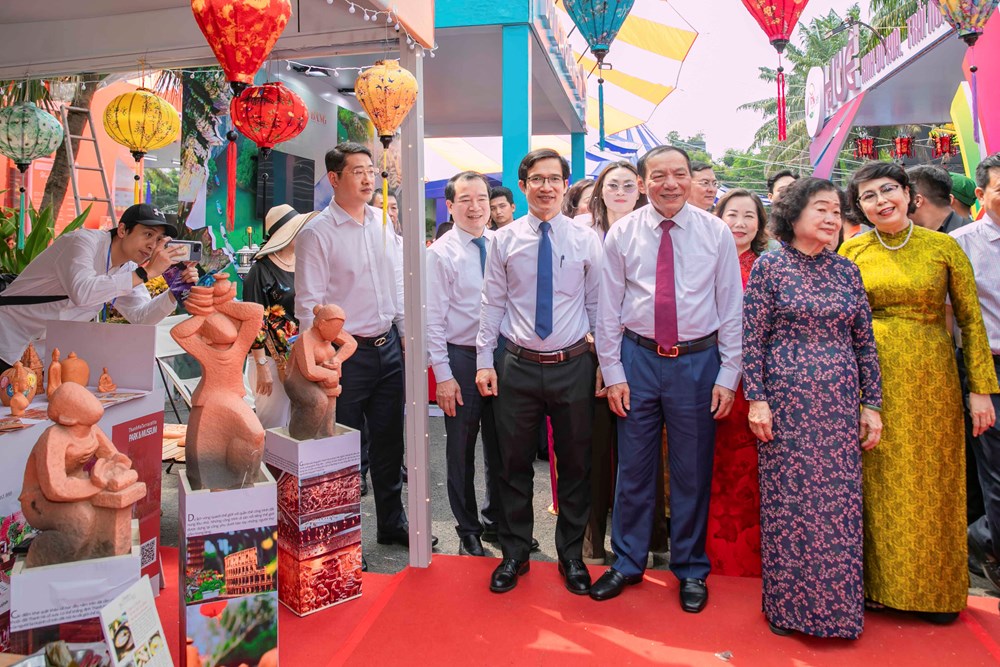 Bộ trưởng Bộ VHTTDL Nguyễn Văn Hùng cùng các đại biểu tham quan gian hàng