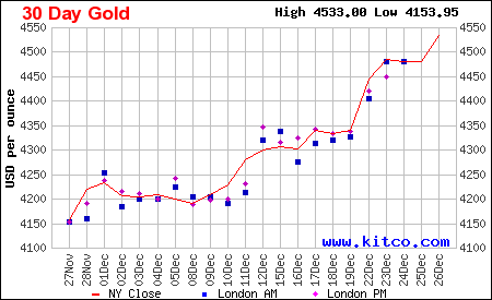 Biểu đồ giá vàng thế giới 30 ngày gần đây. (Ảnh: kitco.com)