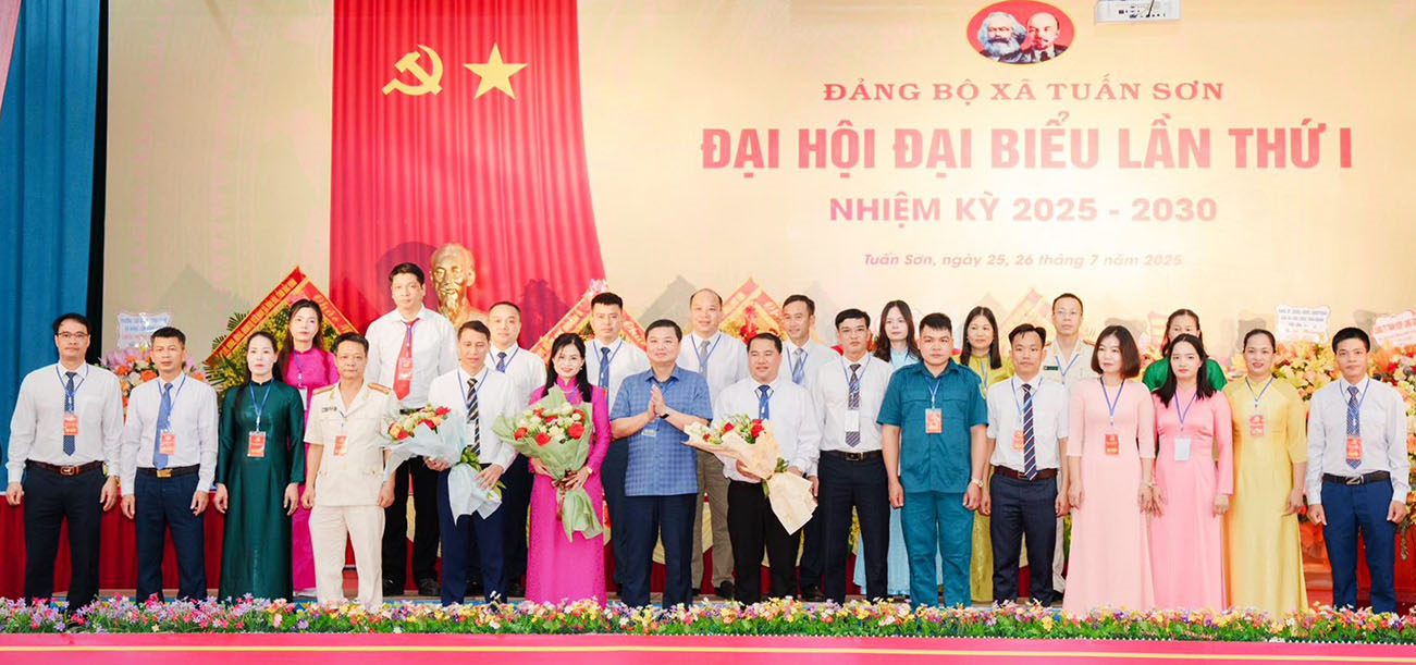 Ban Chấp hành Đảng bộ xã Tuấn Sơn nhiệm kỳ 2025-2030 ra mắt tại Đại hội đại biểu Đảng bộ xã Tuấn Sơn lần thứ I, nhiệm kỳ 2025-2030. Ảnh: TRUNG HIẾU