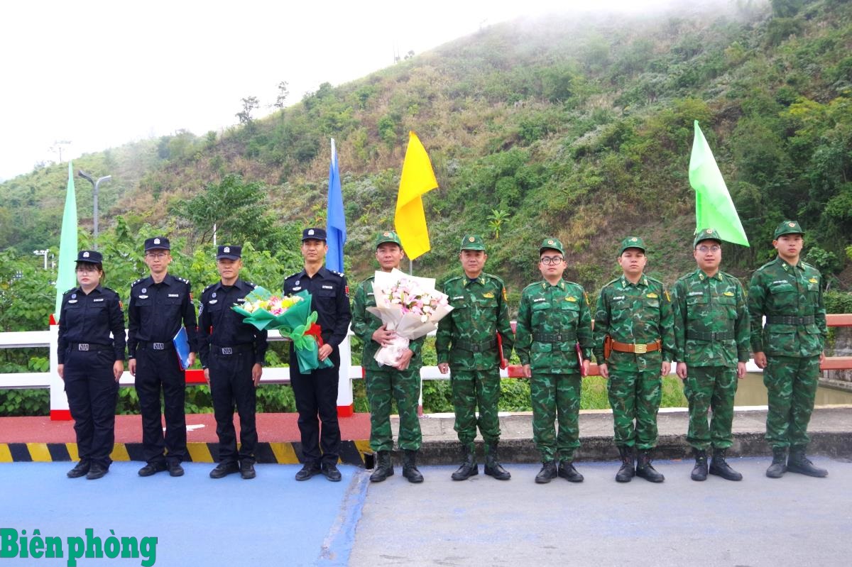 Chỉ huy trưởng tuần tra liên hợp hai Bên gặp nhau tại vạch phân định cầu hữu nghị biên giới Việt - Trung (cửa khẩu Ma Lù Thàng - Kim Thủy Hà). Ảnh: Đức Duẩn