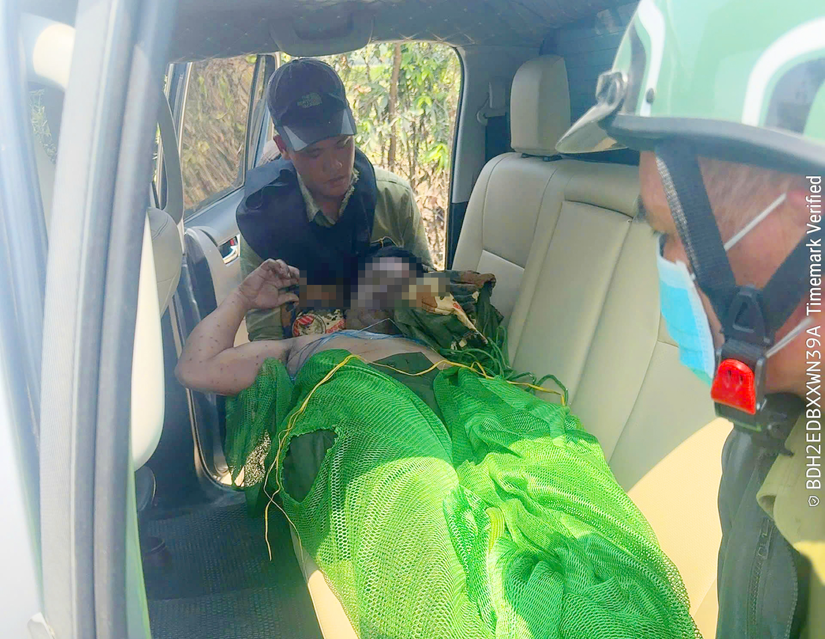 Lực lượng chức năng đưa nạn nhân bị ong đốt đi cấp cứu.