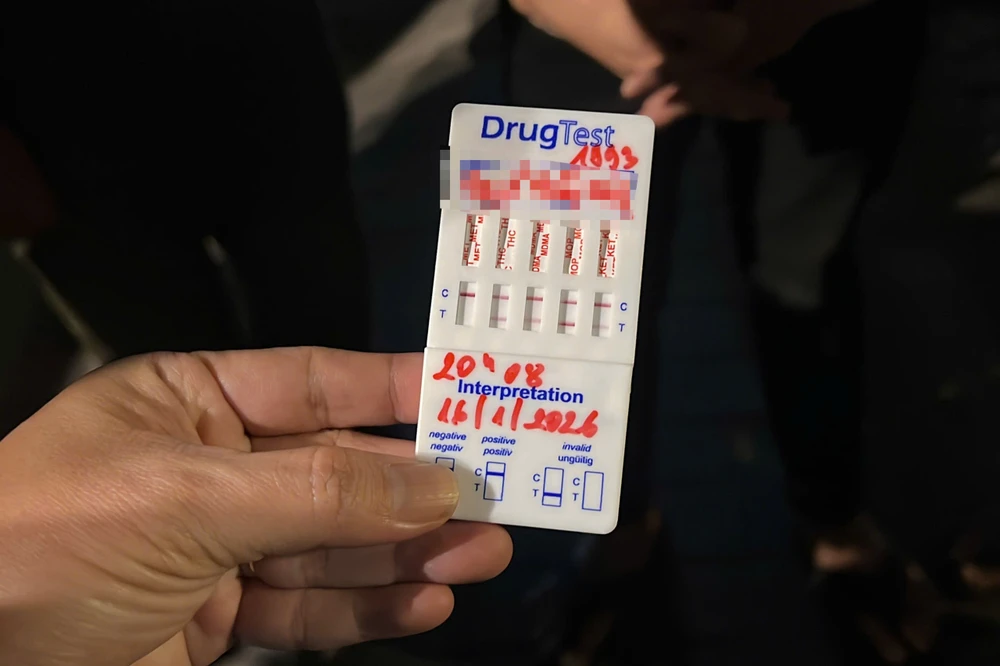 Một trường hợp có kết quả que test nhanh hiển thị dương tính với ma túy trong quá trình kiểm tra tại chợ đầu mối nông sản Thủ Đức. Ảnh: PHẠM HẢI
