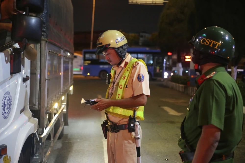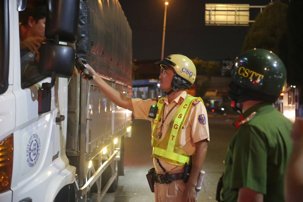 Tối 16-1, Công an phường Tam Bình, TP.HCM phối hợp Đội CSGT Rạch Chiếc, Phòng CSGT (PC08), Công an TP.HCM tổ chức tuần tra, kiểm soát chuyên đề nồng độ cồn và kiểm tra ma túy tại khu vực chợ đầu mối nông sản Thủ Đức.