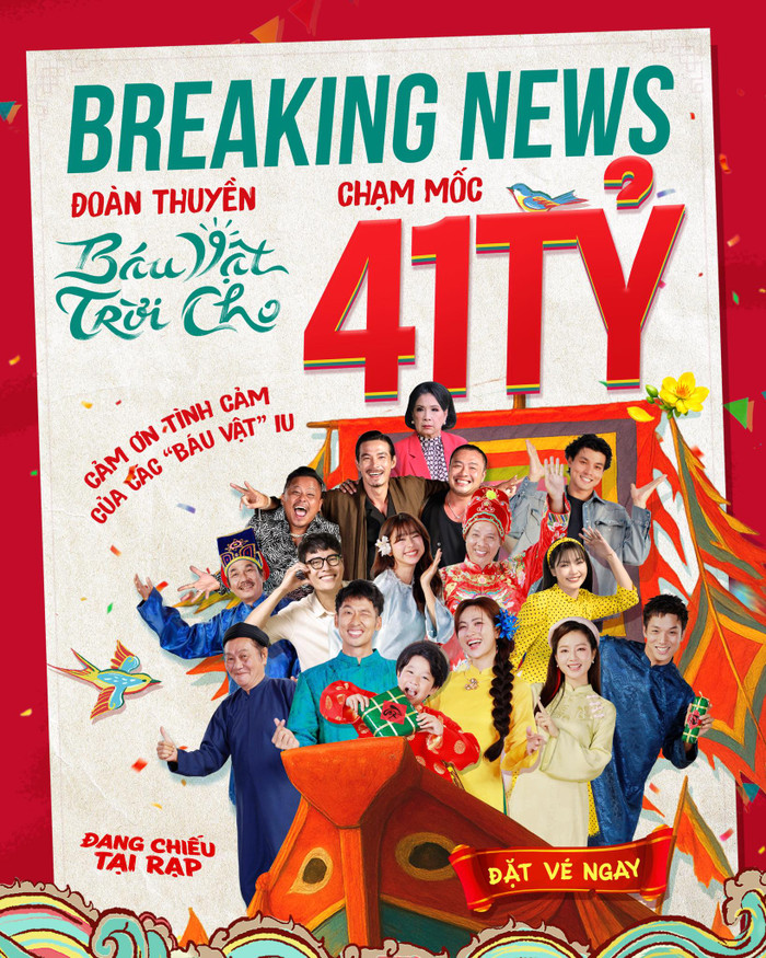 Thành tích này được xem là tín hiệu tích cực đối với ê-kíp sản xuất cũng như dàn diễn viên. Báu Vật Trời Cho ra rạp vào dịp Tết Bính Ngọ 2026, thuộc thể loại hài gia đình tình cảm, với thời lượng 124 phút. Tác phẩm do đạo diễn Lê Thanh Sơn cầm trịch, hướng đến câu chuyện gần gũi, giàu cảm xúc trong không khí sum vầy đầu xuân.