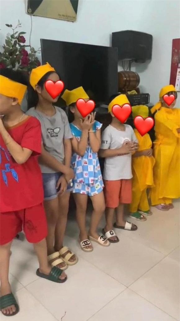 Chắt đeo khăn tang vàng, chút đeo khăn tang đỏ và chít đeo khăn tang tím.