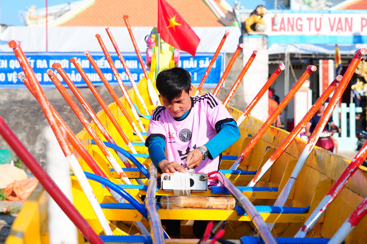 Linh vật gắn ở đầu thuyền được ban tế lễ kính cẩn cầu mong một năm ra khơi bình an, mưa thuận gió hòa, tôm cá đầy khoang, mùa màng tốt tươi.