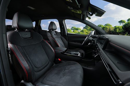 Không chỉ có ngoại thất, nội thất của Tucson cũng được chăm chút với màn hình trung tâm 10,25 inch, đồng hồ kỹ thuật số, ghế da cao cấp, cửa sổ trời panorama, điều hòa 2 vùng, sạc không dây và đèn viền tùy chỉnh tạo trải nghiệm sang trọng và tiện nghi. Hàng ghế sau rộng rãi nhất phân khúc, dung tích cốp 539 lít, nhỉnh hơn CX-5 (442 lít).