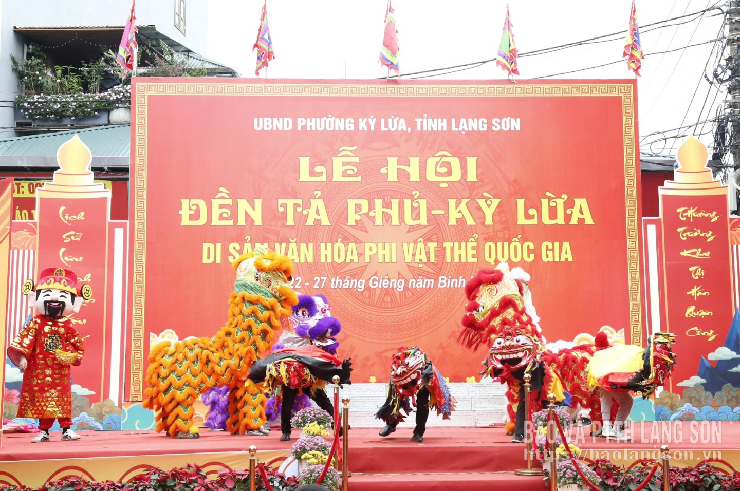 Tiết mục múa lân, sư tử mèo tại Hội đầu pháo Kỳ Lừa