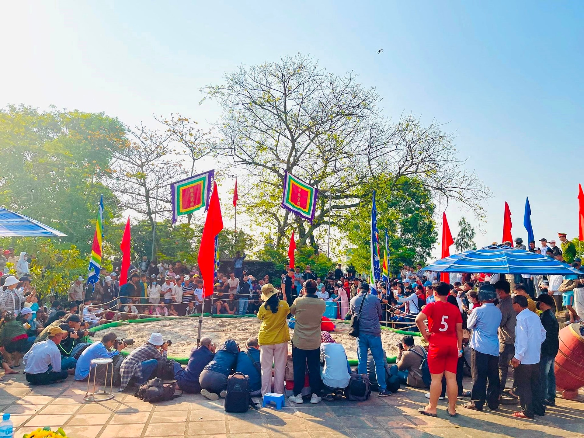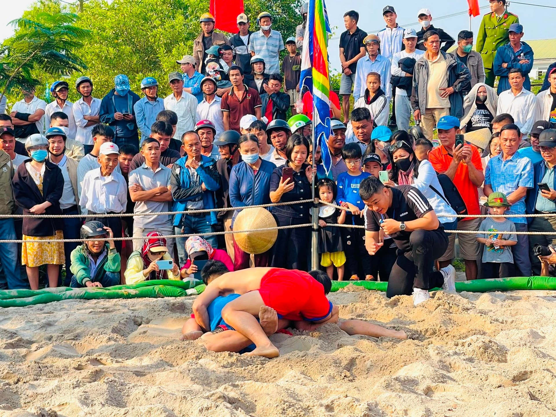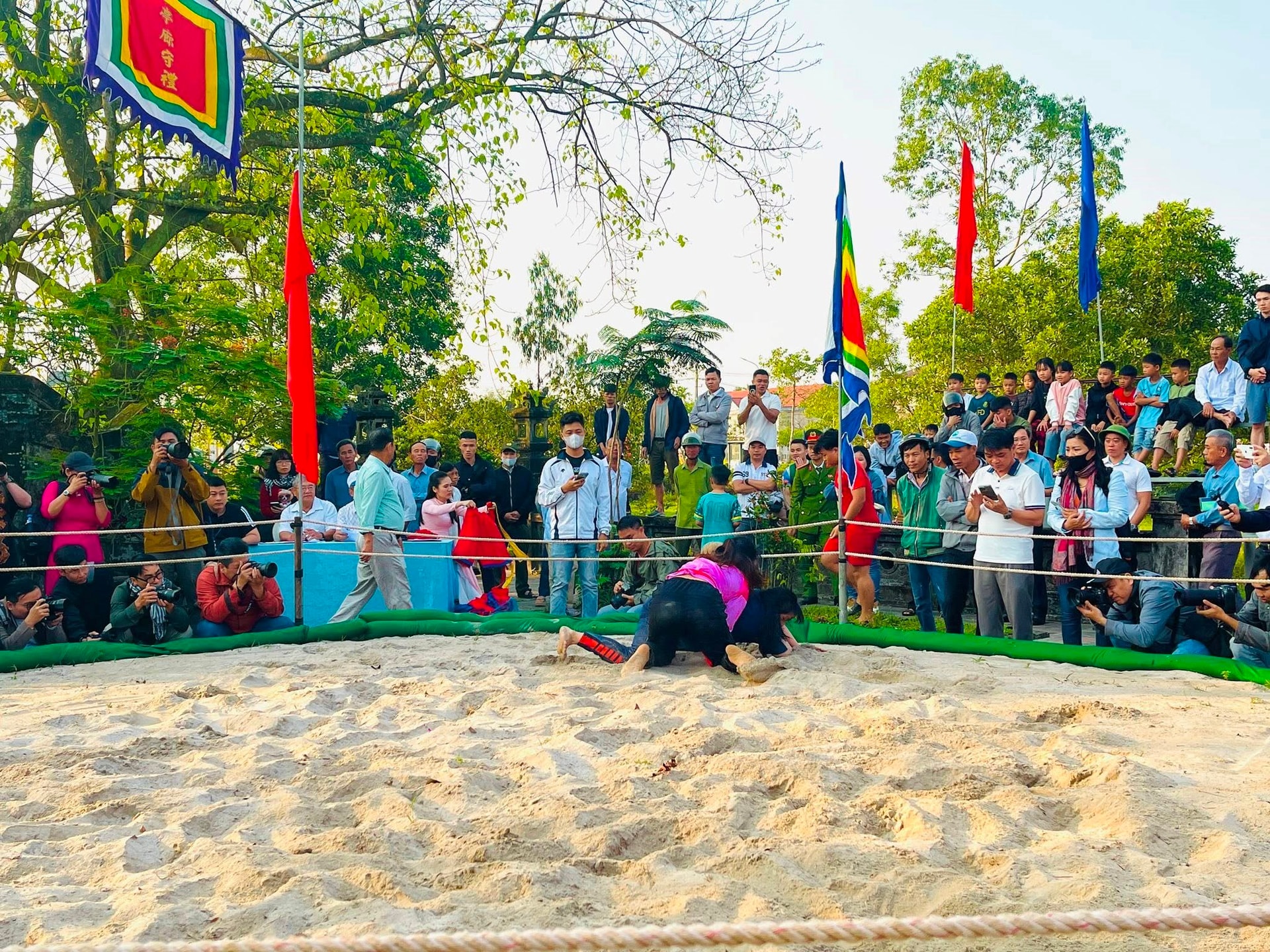 Hội vật Làng Thủ Lễ thu hút rất đông người dân và du khách đến xem và cổ vũ.