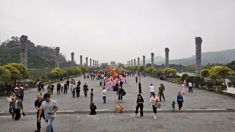 Đoàn rước truyền thống tiến vào khu vực hành lễ.