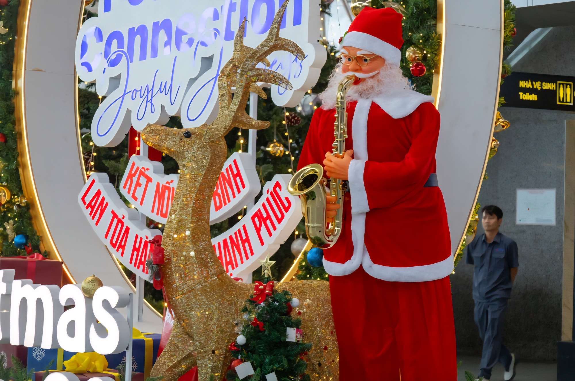 Trong khuôn viên nhà ga, những gam màu Noel rực rỡ cùng các điểm trang trí được sắp đặt hài hòa đã thắp lên không khí tươi vui, thân thiện, trong khi các chương trình âm nhạc vang lên theo từng khung giờ góp phần làm dịu nhịp chờ đợi của hành khách.