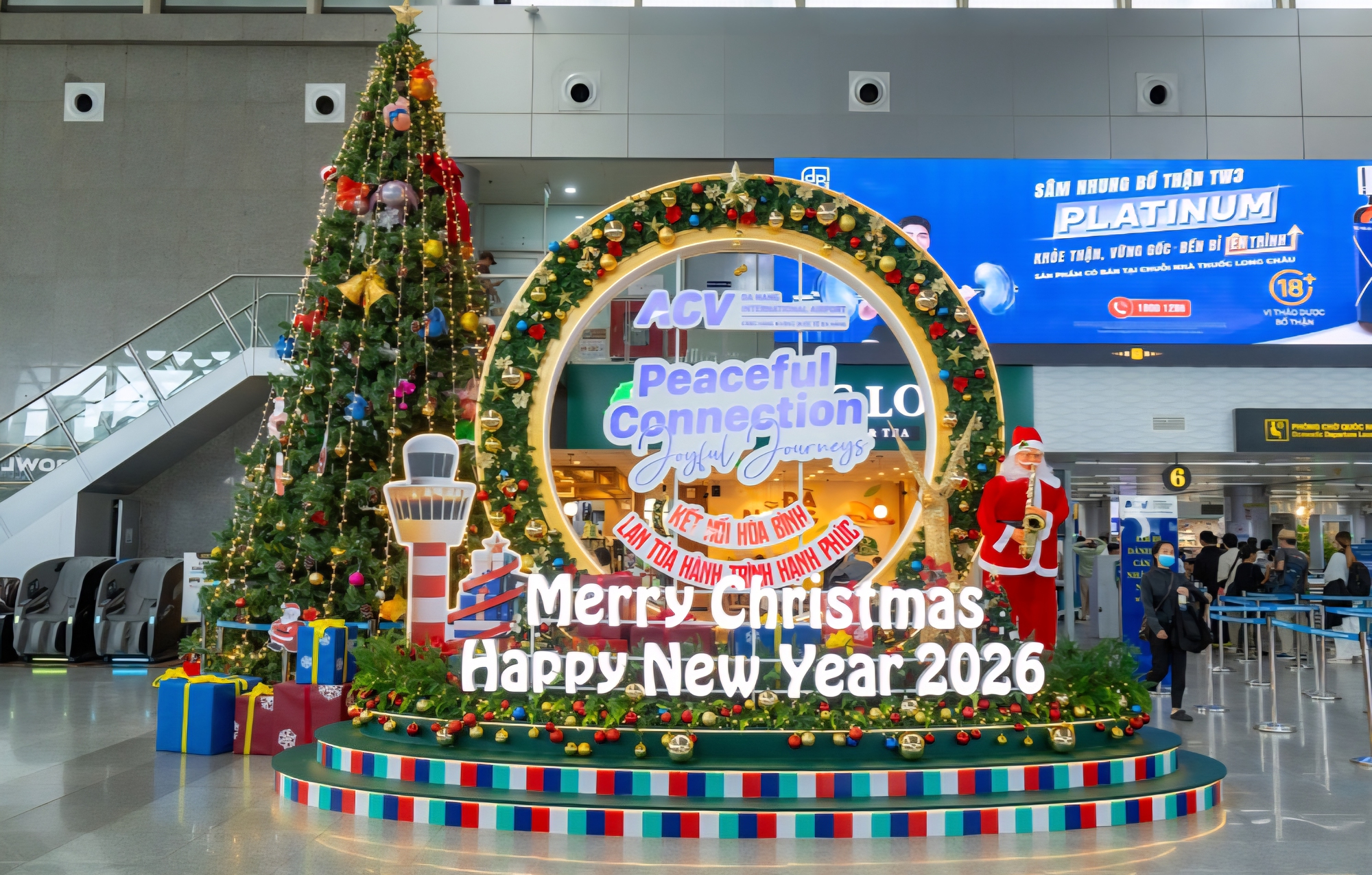 Hòa trong không khí lễ hội cuối năm, Cảng hàng không quốc tế Đà Nẵng tổ chức chuỗi hoạt động mừng Giáng sinh và chào đón năm mới 2026 vào các ngày 24–25/12 và 1/1/2026.