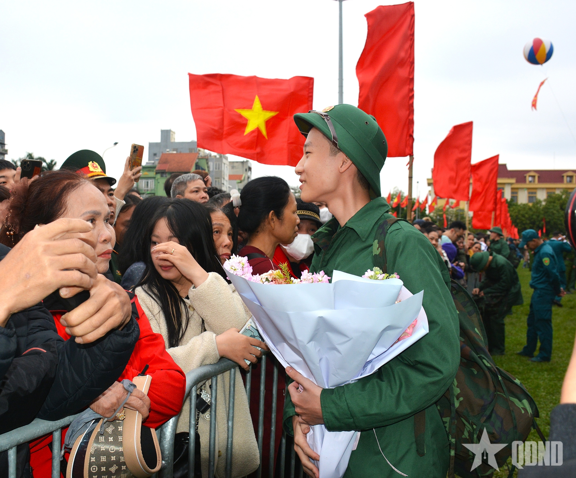Tạm biệt gia đình, bạn bè để lên đường nhập ngũ.