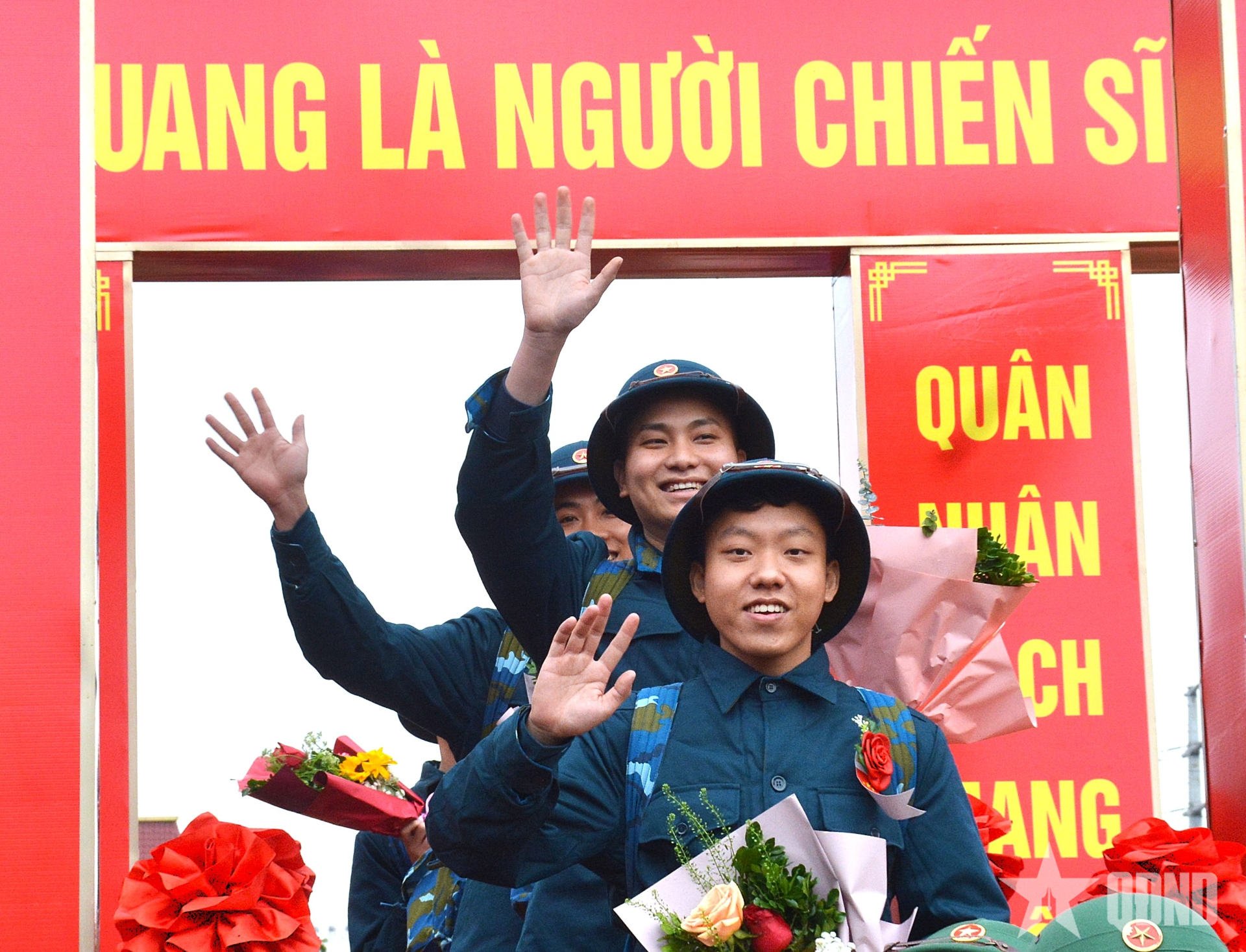 Chia tay bạn bè trước khi lên đường thực hiện nghĩa vụ với Tổ quốc.