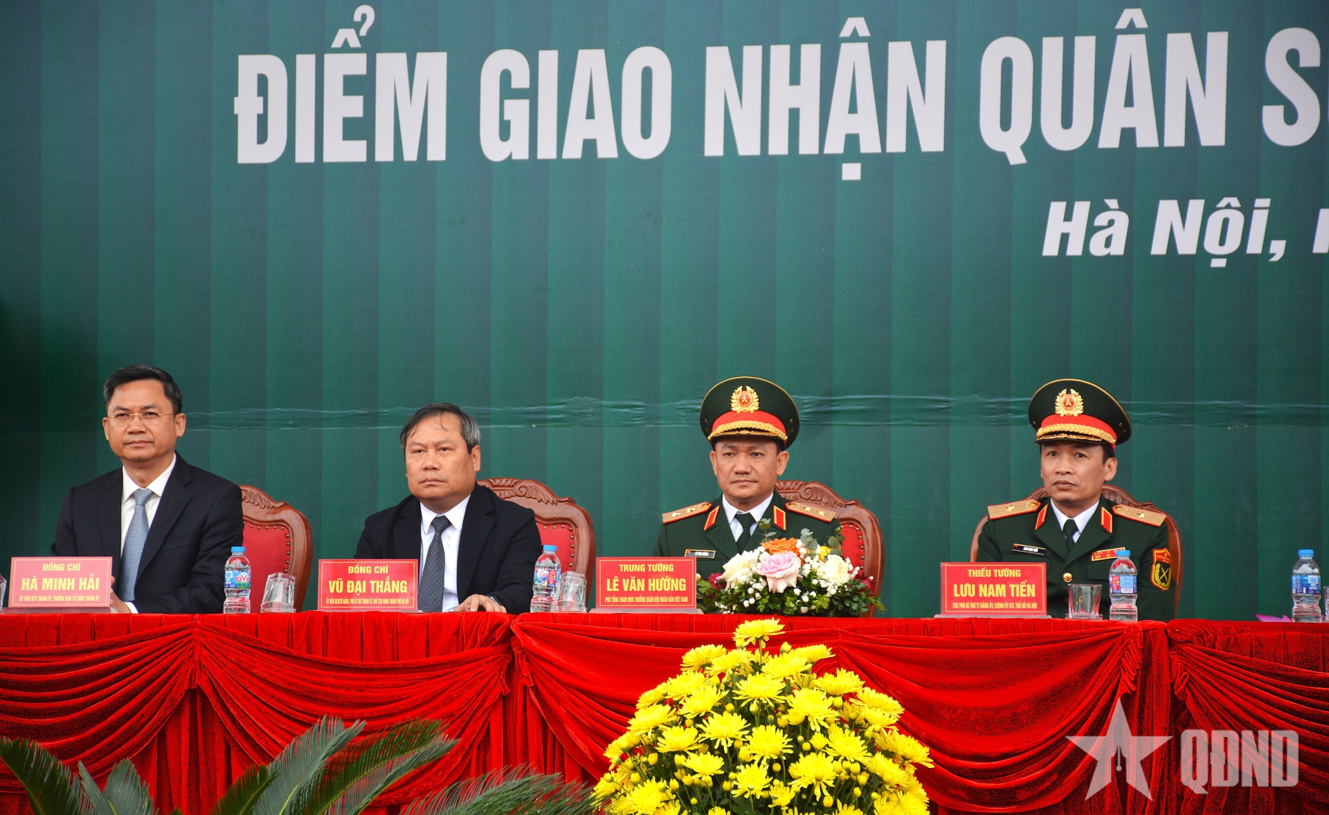 *Dự lễ giao nhận quân tại Điểm giao nhận quân số 7 (Ban chỉ huy Phòng thủ khu vực 5 - Thanh Oai, xã Thanh Trì, Hà Nội) có đồng chí Vũ Đại Thắng, Ủy viên Trung ương Đảng, Chủ tịch UBND Thành phố Hà Nội; Trung tướng Lê Văn Hướng, Phó tổng Tham mưu trưởng; Thiếu tướng Lưu Nam Tiến, Chính ủy Bộ tư lệnh Thủ đô Hà Nội.