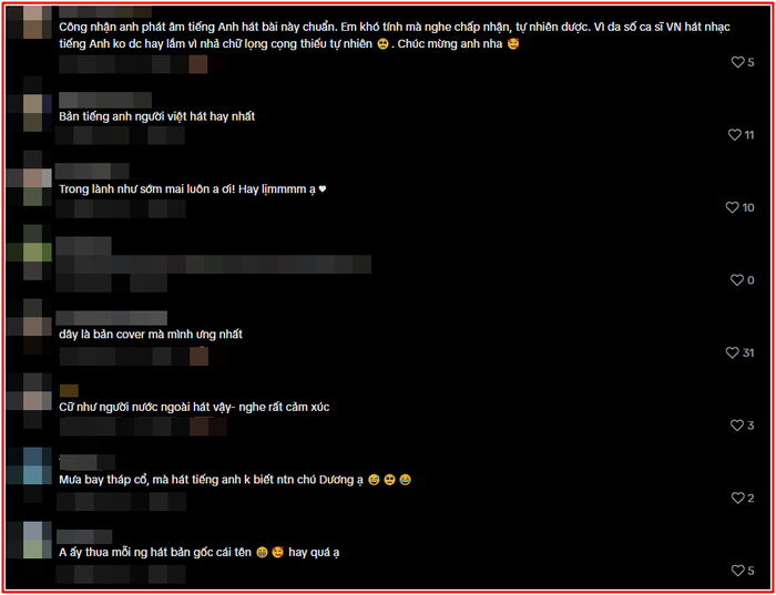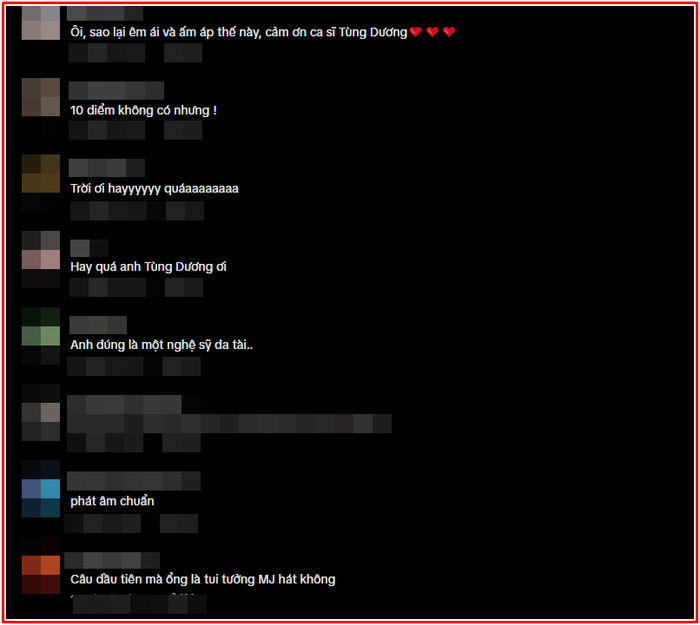 Bên dưới phần bình luận, đông đảo cư dân mạng bày tỏ sự ngạc nhiên và thán phục trước giọng hát truyền cảm, phát âm tiếng Anh chuẩn xác cùng phong thái biểu diễn của Tùng Dương. Không ít khán giả nhận xét: "Anh hát như thu âm", "Nghe tưởng người nước ngoài". Một khán giả để lại bình luận khiến nhiều người đồng tình: "Anh phát âm tiếng Anh tự nhiên lắm, khó tính như em mà vẫn thấy hay, mượt và đầy cảm xúc".