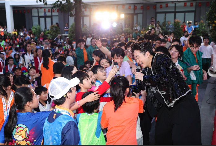 Nam ca sĩ hào hứng giao lưu với các thầy cô, học sinh