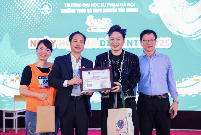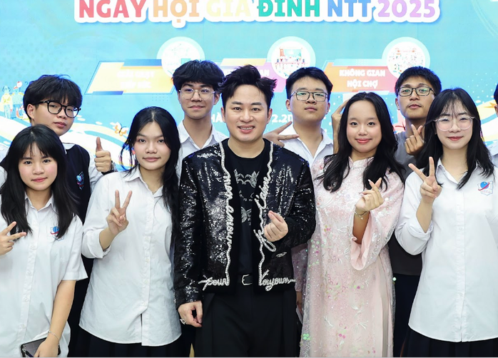 Ca sĩ Tùng Dương và các học sinh Trường THCS và THPT Nguyễn Tất Thành