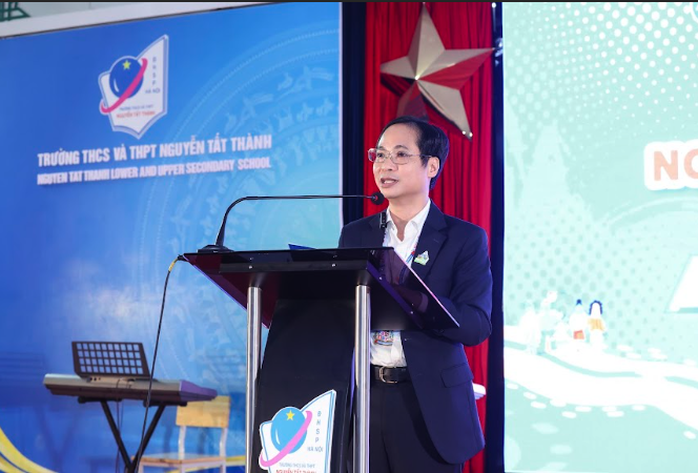 TS Phạm Sỹ Cường, Hiệu trưởng Trường THCS và THPT Nguyễn Tất Thành, phát biểu tại sự kiện