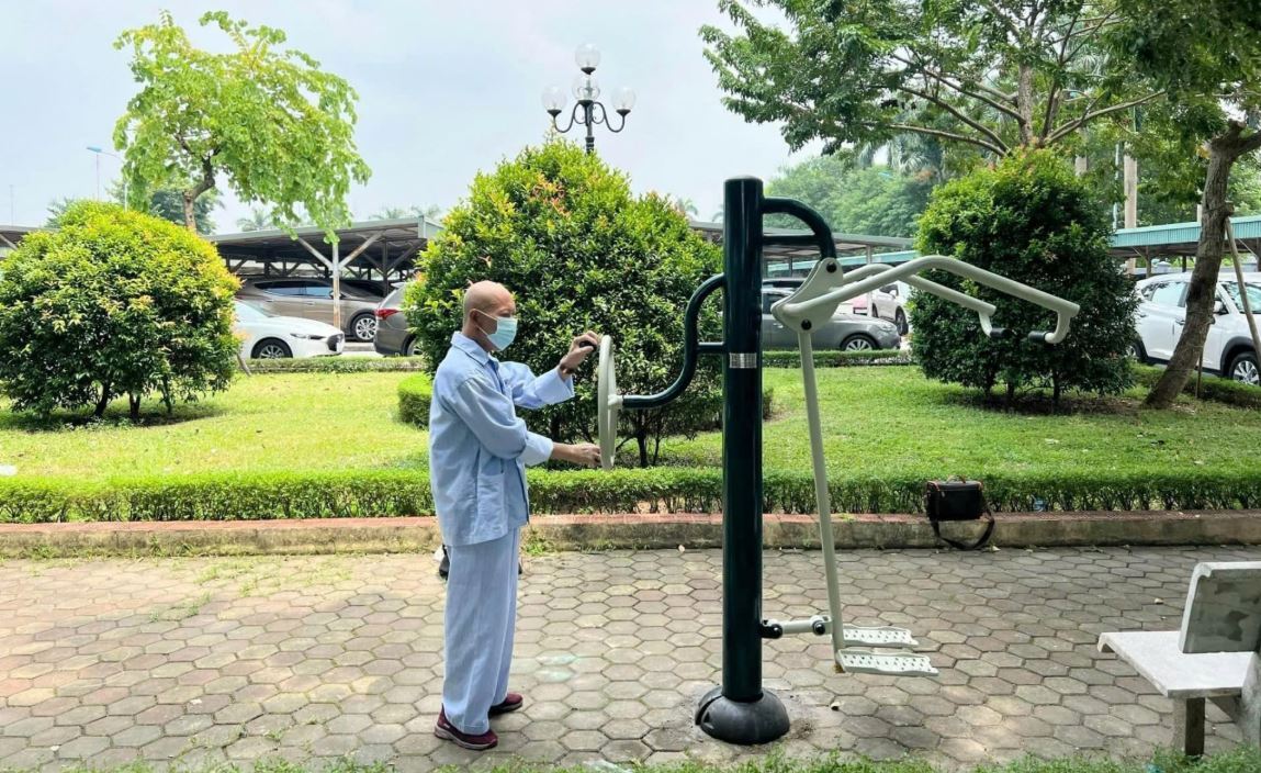 Khu vườn thiền tĩnh lặng, khu vực cây xanh thư giãn tại Bệnh viện K hỗ trợ đắc lực quá trình phục hồi tâm lý và thể chất (Ảnh: Bệnh viện K)