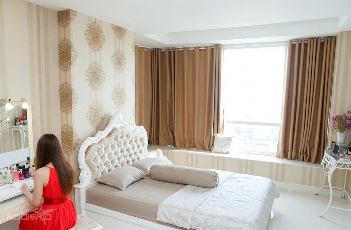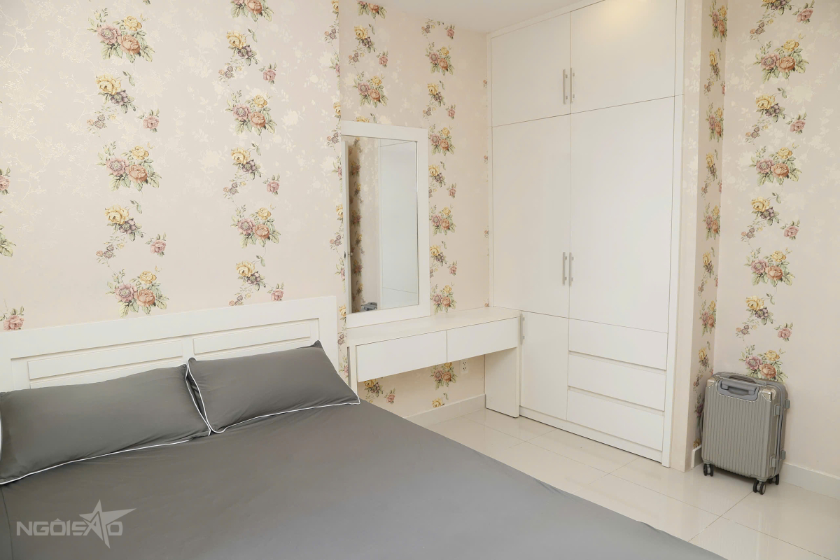 Căn hộ có ba phòng ngủ, trong đó phòng riêng của Minh Thư rộng rãi, được trang trí theo phong cách tân cổ điển.