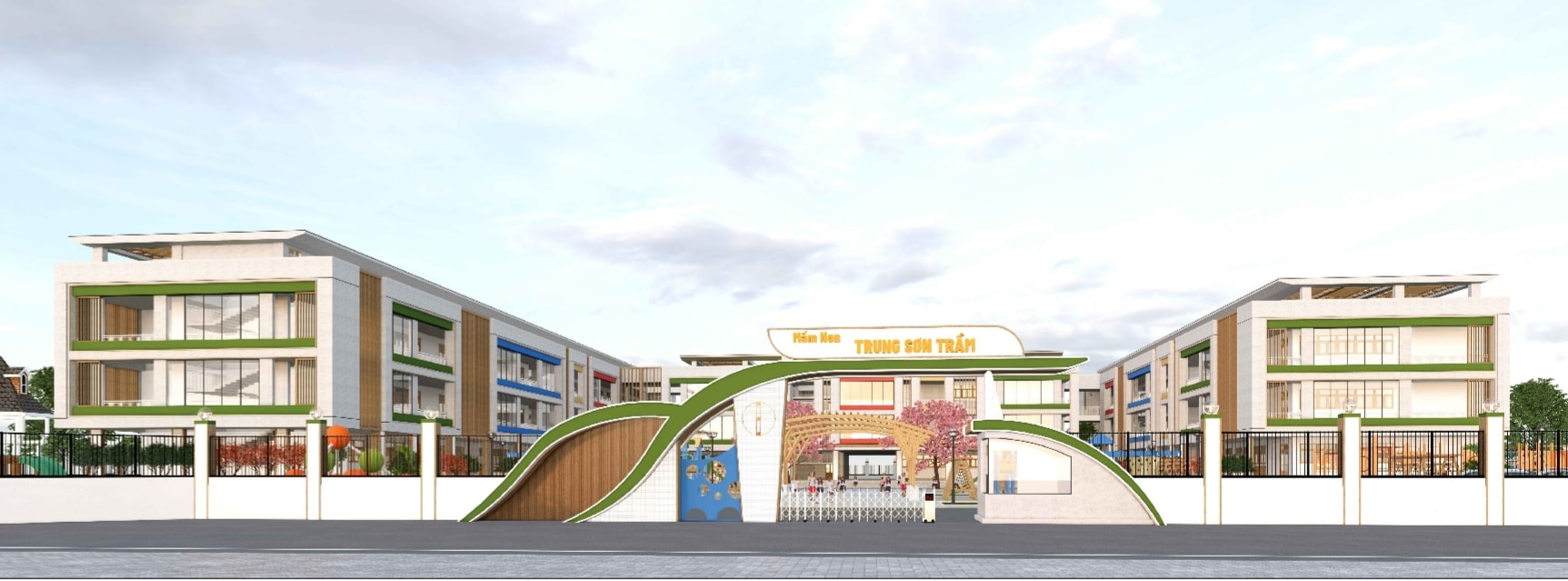 Phối cảnh dự án Trường Mầm non Trung Sơn Trầm khi hoàn thiện, sẽ đạt chuẩn Quốc gia mức độ II. Ảnh: Trung Nguyên