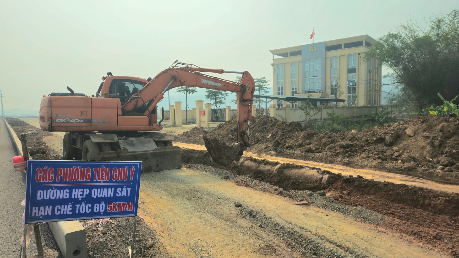Dự án cải tạo, nâng cấp tỉnh lộ 413, đoạn qua địa bàn phường Tùng Thiện đang được gấp rút thi công, hoàn thiện. Ảnh: Ánh Dương