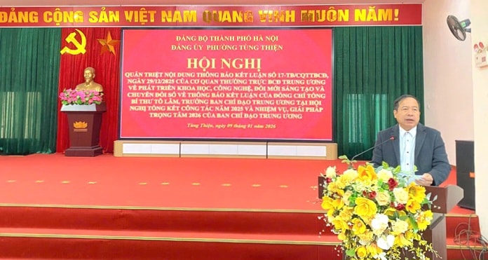 phát biểu tại hội nghị, Phó Bí thư Thường trực Đảng ủy phường Tùng Thiện Phùng Huy Vinh nhấn mạnh, việc quán triệt, triển khai nghiêm túc Thông báo Kết luận của đồng chí Tổng Bí thư Tô Lâm có ý nghĩa quan trọng, góp phần tạo thống nhất cao về nhận thức và hành động trong toàn Đảng bộ. Phó Bí thư Thường trực Đảng ủy phường Tùng Thiện Phùng Huy Vinh đề nghị các chi bộ, cơ quan, đơn vị trên địa bàn phường căn cứ chức năng, nhiệm vụ được giao, chủ động xây dựng kế hoạch triển khai cụ thể, thiết thực, gắn với nhiệm vụ chính trị của địa phương; tiếp tục đẩy mạnh ứng dụng công nghệ thông tin, chuyển đổi số trong hoạt động của hệ thống chính trị; nâng cao hiệu quả cung cấp dịch vụ công trực tuyến, cải cách hành chính, xây dựng chính quyền số, đô thị thông minh; khuyến khích tinh thần đổi mới sáng tạo trong đội ngũ cán bộ, công chức, viên chức... đáp ứng yêu cầu phát triển trong giai đoạn mới.