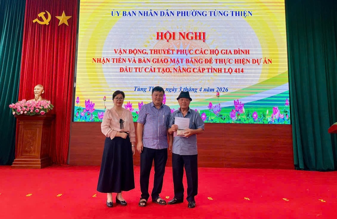 Đáng chú ý, ngay tại hội nghị, hộ ông Nguyễn Văn Vịnh (Tổ dân phố 5, Xuân Khanh) đã đồng thuận nhận tiền bồi thường, hỗ trợ và cam kết bàn giao mặt bằng. Đây là tín hiệu tích cực, góp phần tạo hiệu ứng lan tỏa trong cộng đồng dân cư, củng cố niềm tin và thúc đẩy các hộ còn lại sớm đồng thuận.