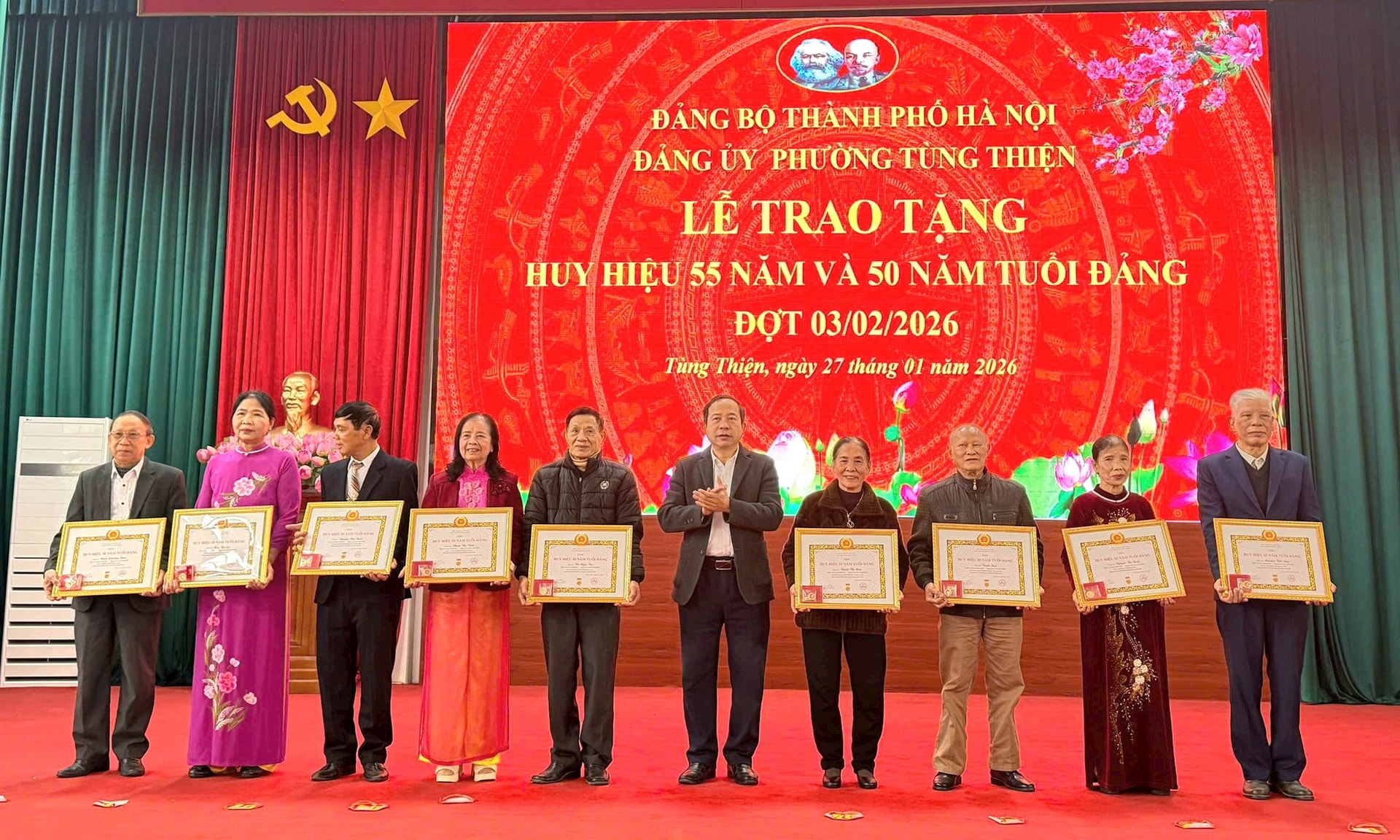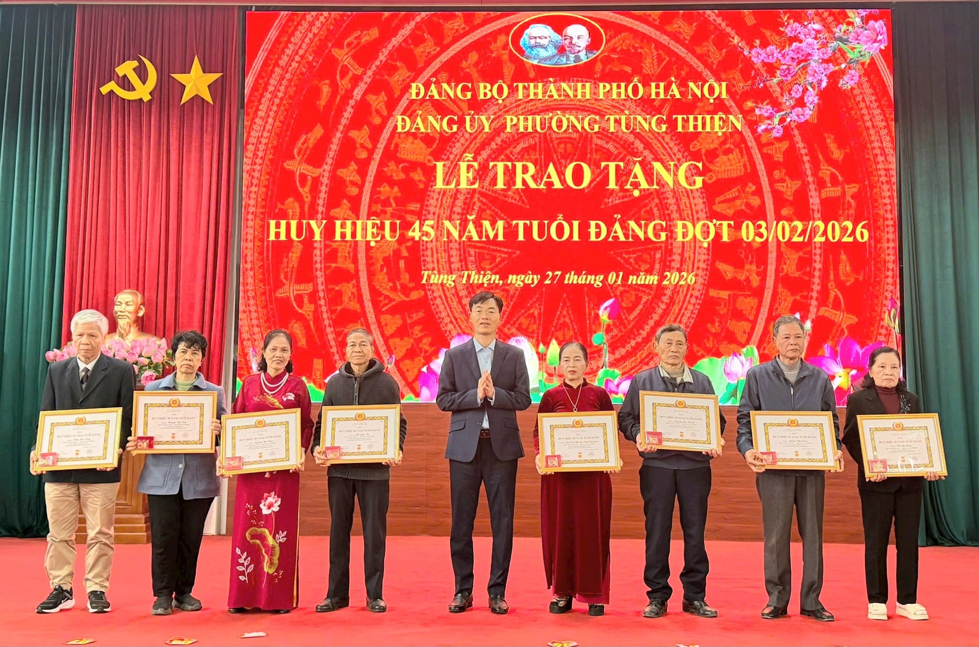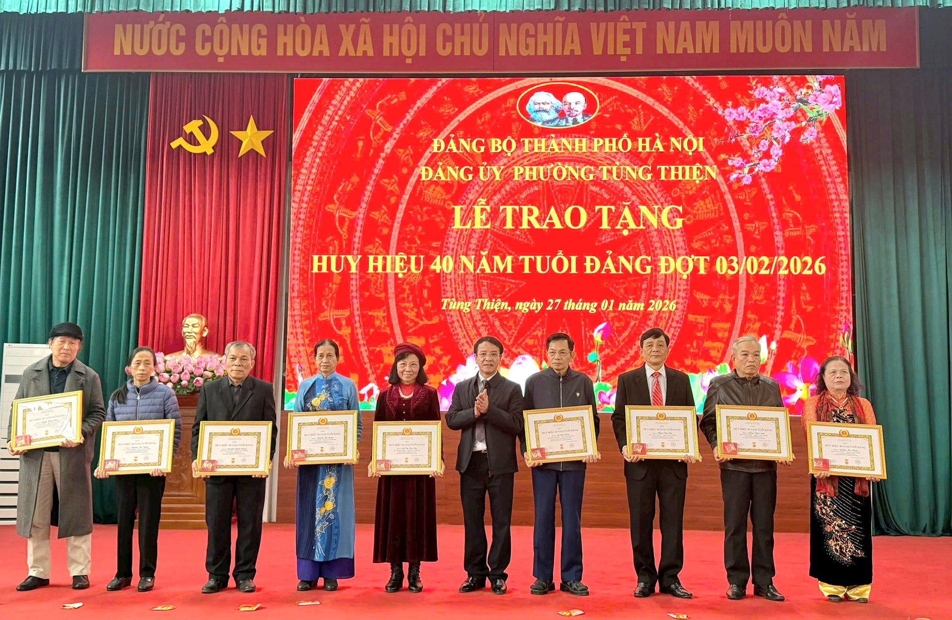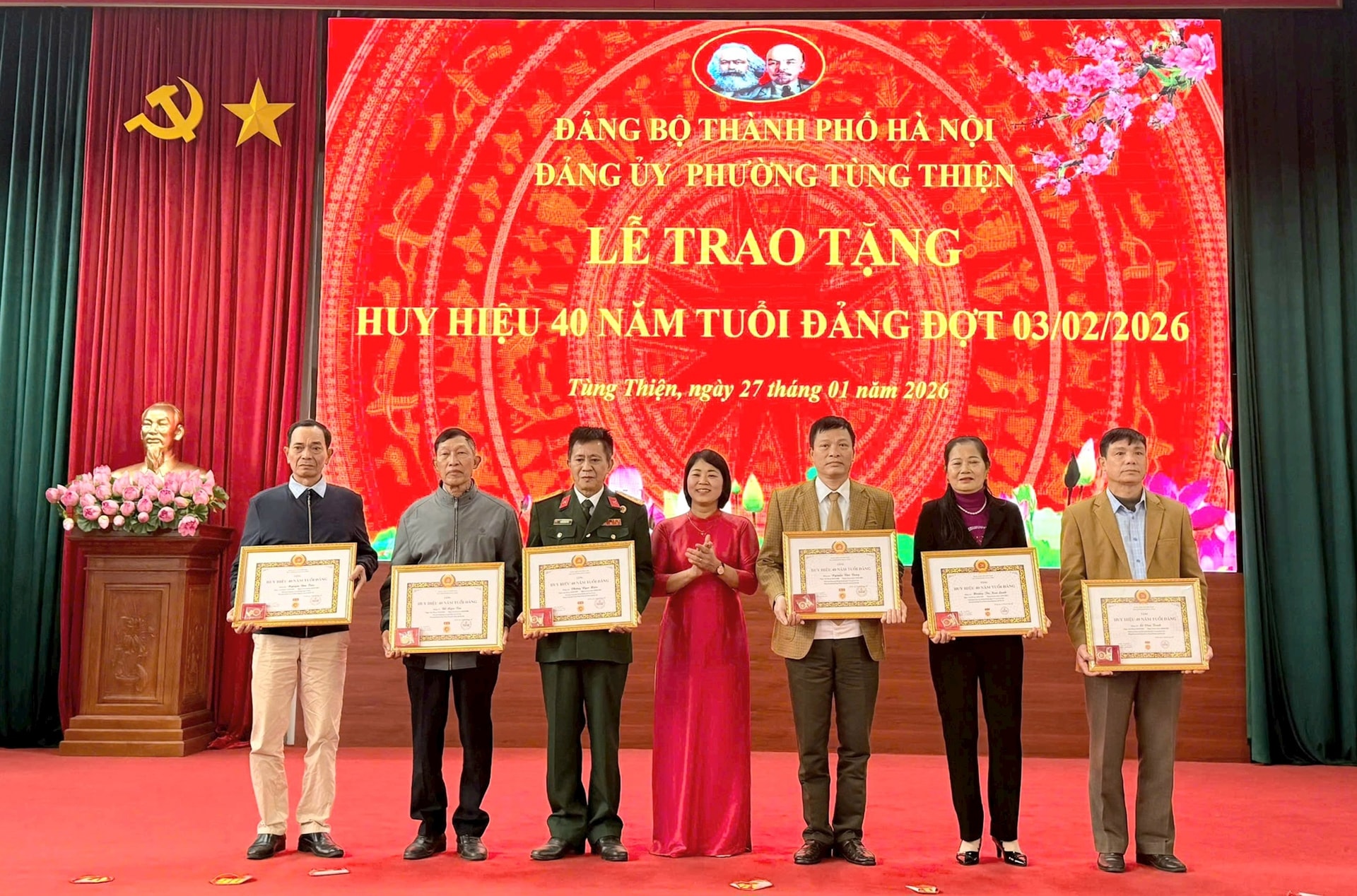 Đợt này, Đảng bộ phường Tùng Thiện vinh dự có 60 đảng viên được trao tặng Huy hiệu 60, 55, 50, 45, 40, 30 năm tuổi Đảng; 2 đảng viên được truy tặng Huy hiệu 60 năm và 40 năm tuổi Đảng.