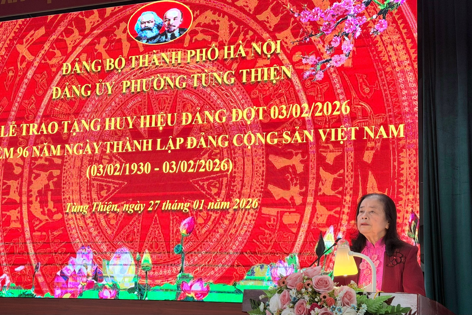 Phát biểu tại buổi lễ, Bí thư Đảng ủy, Chủ tịch HĐND phường Tùng Thiện Đỗ Thị Lan Hương khẳng định, 96 năm qua là chặng đường vẻ vang của Đảng, của bản lĩnh, trí tuệ, lòng trung thành tuyệt đối với lợi ích của nhân dân, dân tộc, được hun đúc từ biết bao thế hệ đảng viên kiên trung, trong đó có các đồng chí đảng viên của Đảng bộ phường Tùng Thiện.