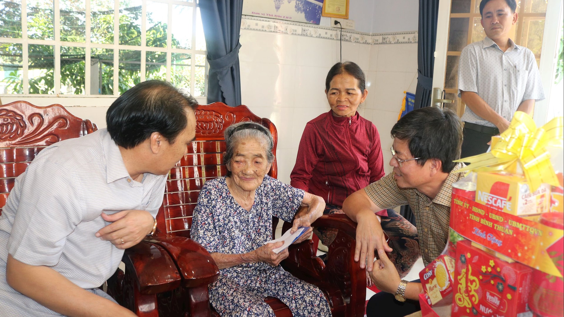 Ở tuổi thượng thọ xưa nay hiếm của Mẹ VNAH Dương Thị Thạnh đã khiến chúng tôi tìm đến căn nhà của mẹ nằm khá sâu bên con đường bê tông xi măng nhỏ từ ngoài quốc lộ 1A vào cuối thôn 1, xã Hàm Tân, tỉnh Lâm Đồng. Trước đó, 2 lần chúng tôi lần lượt được tháp tùng đoàn công tác của Phó Bí thư Thường trực Tỉnh ủy Đặng Hồng Sỹ thăm, tặng quà Mẹ VNAH Dương Thị Thạnh trong dịp kỷ niệm Ngày Thương binh - Liệt sĩ (27/7/1947 - 27/7/2024); Ủy viên Ban Thường vụ Tỉnh ủy, Phó Chủ tịch UBND tỉnh Nguyễn Hồng Hải thăm mẹ Thạnh dịp kỷ niệm 50 năm Ngày giải phóng miền Nam, thống nhất đất nước. Ở 2 lần ấy, Mẹ VNAH Dương Thị Thạnh được cán bộ Đoàn địa phương và người con dâu dẫn ngồi ở ghế salon gỗ trong ngôi nhà xây tươm tất, mẹ từ tốn chìa ra bắt tay các đồng chí trong đoàn lãnh đạo tỉnh đến thăm, chúc sức khỏe. Chị Lê Thị Biên, người con dâu của mẹ ghé gần nói vào tai cho mẹ nghe rõ hơn lời thăm hỏi ân cần của 2 đồng chí đại diện lãnh đạo Tỉnh ủy, UBND tỉnh làm Trưởng đoàn lúc ấy thăm mẹ ở thị trấn Tân Nghĩa (cũ), nay là xã Hàm Tân. Mẹ Thạnh cười móm mém, gật đầu, tỏ ý cám ơn sự quan tâm của lãnh đạo tỉnh dành cho gia đình có công với cách mạng. Các đồng chí lãnh đạo tỉnh đã bày tỏ sự biết ơn sâu sắc đối với những đóng góp của Mẹ VNAH Dương Thị Thạnh trong kháng chiến khốc liệt; chúc mẹ thượng thọ sống lâu, vui tuổi già cùng con cháu, như điều phúc của gia đình; đồng thời, gửi món quà của tỉnh tri ân sự hi sinh thầm lặng một thời của mẹ, góp phần vào thống nhất non sông.