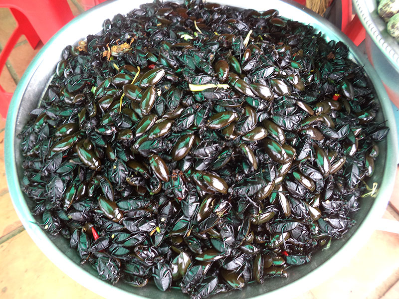 Bù niễng rang bơ ở chợ côn trùng Skun, tỉnh Kampong Cham, Campuchia.Ảnh: Đ.T.T