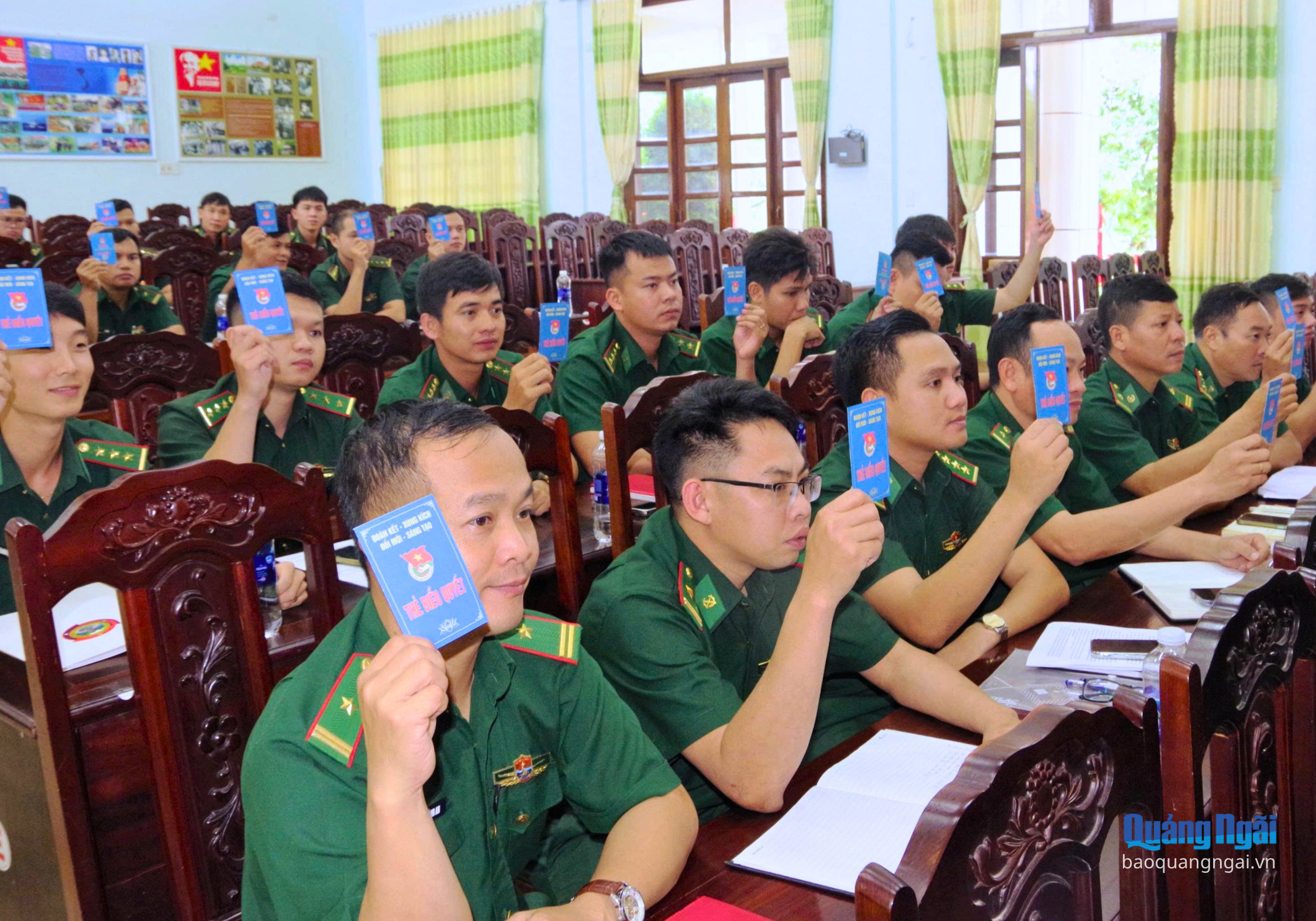 Đại biểu dự hội nghị biểu thị sự thống nhất cao, thể hiện tinh thần trách nhiệm và quyết tâm của tuổi trẻ Bộ đội Biên phòng tỉnh.
