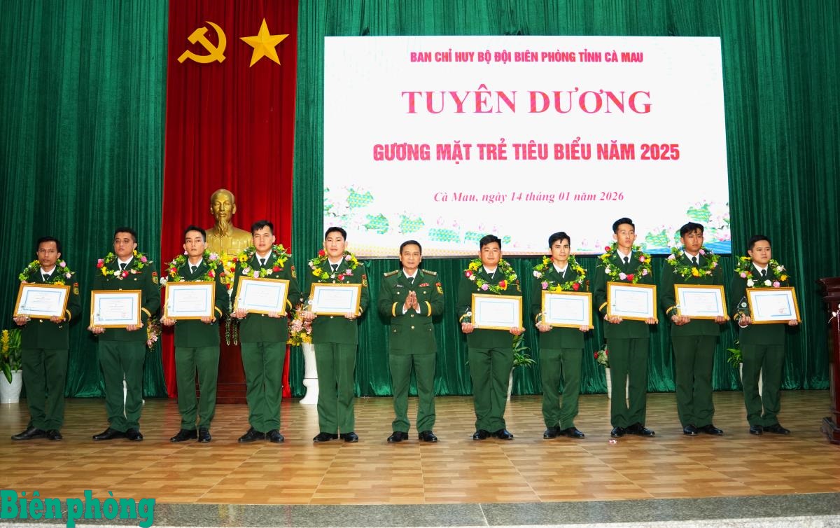Dịp này, Ban Chỉ huy Bộ đội Biên phòng tỉnh Cà Mau tuyên dương và trao thưởng cho 10 “Gương mặt trẻ tiêu biểu” năm 2025.