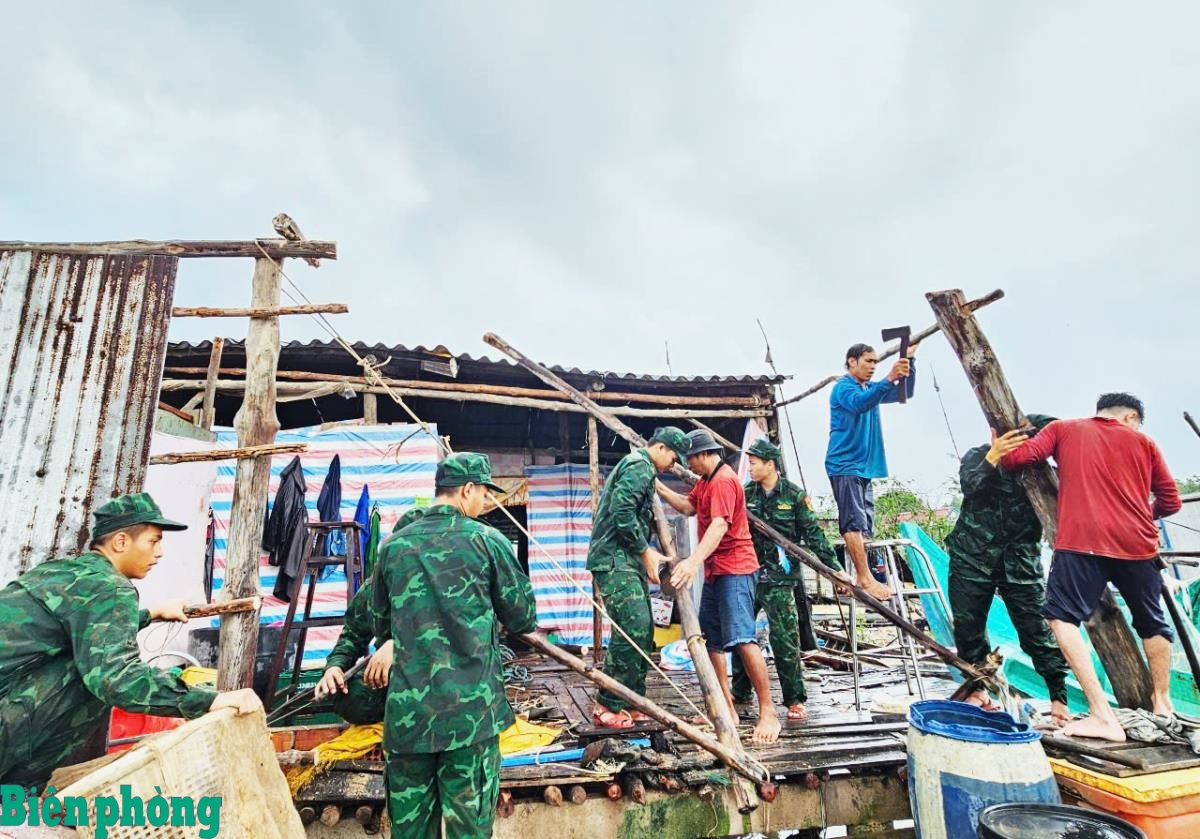 Tuổi trẻ Bộ đội Biên phòng tỉnh Cà Mau giúp nhân dân khắc phục hậu quả do thiên tai gây ra. Ảnh: Hoàng Tá