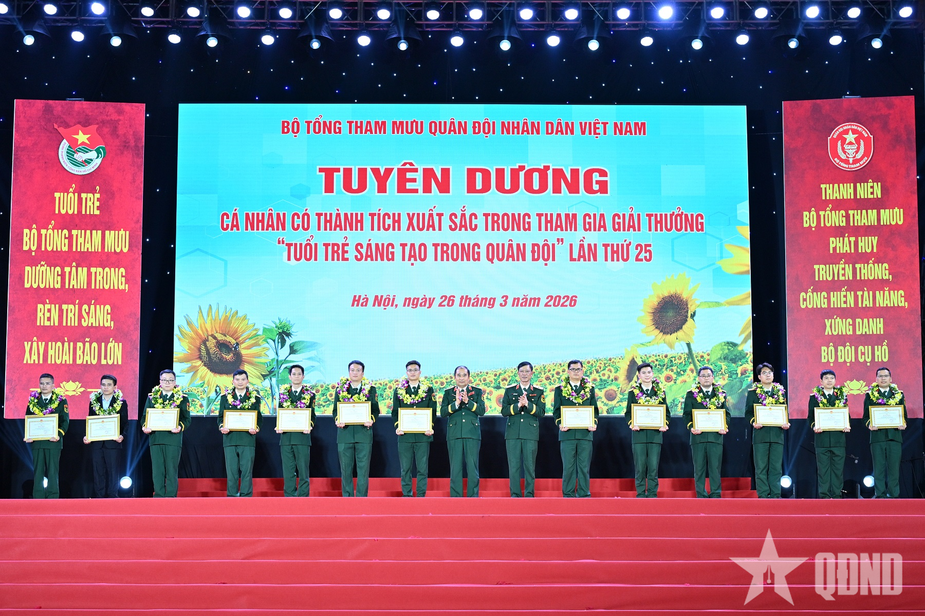 Tại chương trình, Ban tổ chức đã tuyên dương 10 Gương mặt trẻ tiêu biểu BTTM năm 2025; trao thưởng cho 13 cá nhân đạt Giải thưởng “Tuổi trẻ sáng tạo trong Quân đội” lần thứ 25.