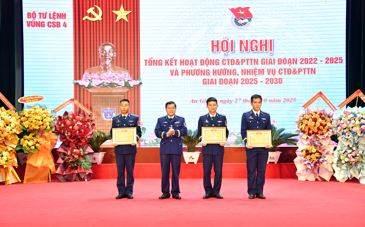 Công tác xây dựng tổ chức Đoàn vững mạnh được chú trọng, tích cực tạo nguồn phát triển Đảng (giới thiệu 92 ĐVTN ưu tú kết nạp Đảng giai đoạn 2022-2025). Đặc biệt, tuổi trẻ Bộ Tư lệnh Vùng Cảnh sát biển 4 luôn xung kích trong công tác dân vận thông qua Chương trình “Cảnh sát biển đồng hành với ngư dân”, tích cực tham gia xây dựng Nông thôn mới; là lực lượng xung kích, đi đầu trong thực hiện nhiệm vụ tuần tra, kiểm soát, thực thi pháp luật, chống buôn lậu, gian lận thương mại, chống khai thác IUU và cứu hộ, cứu nạn trên biển, góp phần lan tỏa hình ảnh đẹp của Bộ đội Cụ Hồ - Người chiến sĩ Cảnh sát biển thời kỳ mới.