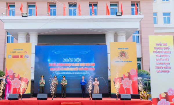 Ban Thanh niên Công an TP Hồ Chí Minh và các doanh nghiệp đồng hành đã trao 150 học bổng tiếng Anh, 40 phần quà Tết cho đại diện các đơn vị và chiến sĩ nghĩa vụ tham gia ngày hội.