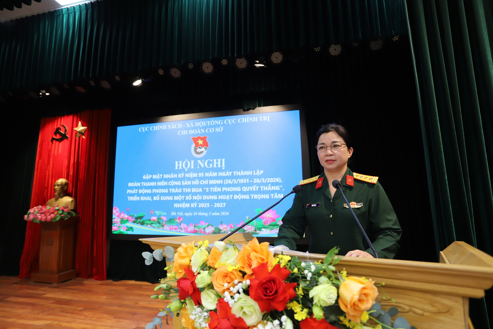 Phát biểu chỉ đạo hội nghị, thay mặt các đồng chí trong Đảng ủy, chỉ huy Cục Chính sách - Xã hội, Đại tá Ngô Thị Lệ ghi nhận, biểu dương tinh thần trách nhiệm, sự năng động, sáng tạo của Chi đoàn cơ sở, nhất là trong giai đoạn vừa kiện toàn tổ chức sau sáp nhập.
