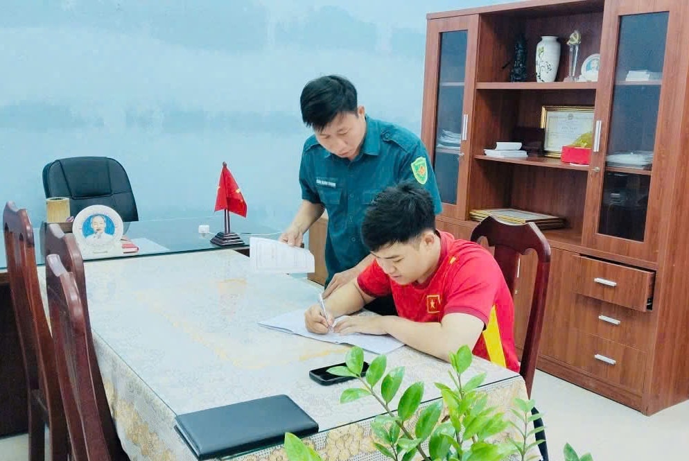 Thanh niên vừa tròn 18 tuổi viết đơn tình nguyện nhập ngũ. Ảnh: QUANG CƯỜNG