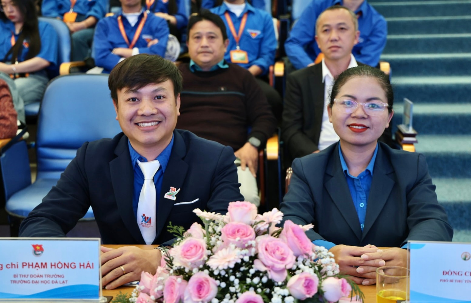Đồng chí H’Hồng, Phó Bí thư Tỉnh đoàn Lâm Đồng và Bí thư trường Đại học Đà Lạt tham dự buổi lễ