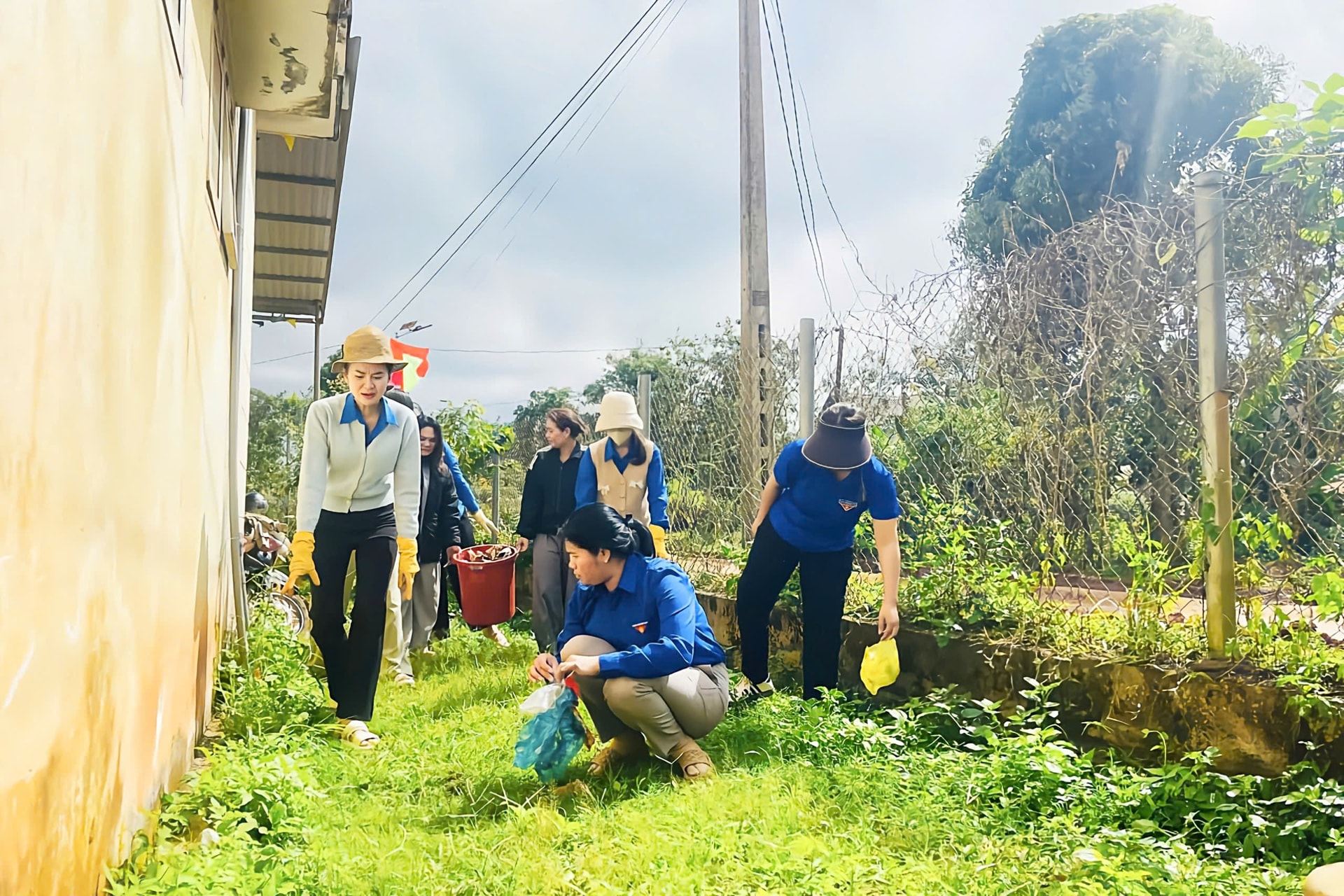 Đoàn viên, thanh niên tham gia dọn dẹp vệ sinh môi trường, phát quang bụi rậm, làm sạch đường làng, ngõ xóm