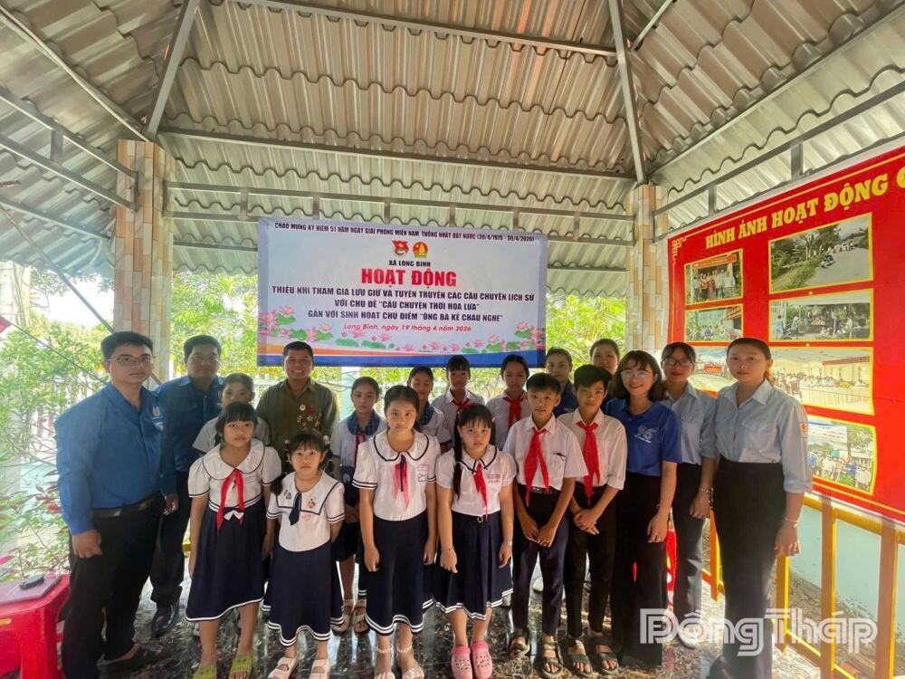 Không chỉ tại Gia Thuận, tại xã Long Bình, Ban Thường vụ Đoàn - Hội đồng Đội xã phối hợp tổ chức sinh hoạt truyền thống cho học sinh Trường THCS Huỳnh Xuân Việt, thu hút hơn 300 học sinh tham gia.