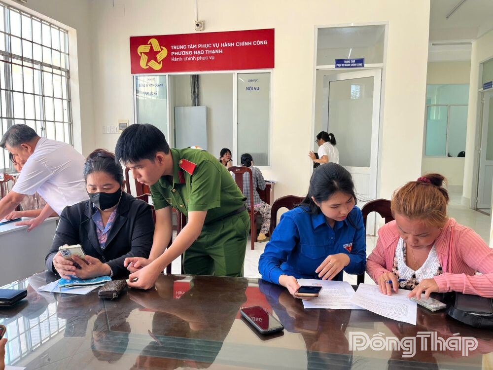 Đoàn viên, thanh niên phường Đạo Thạnh hỗ trợ người dân làm Căn cước công dân, dịch vụ công trực tuyến.