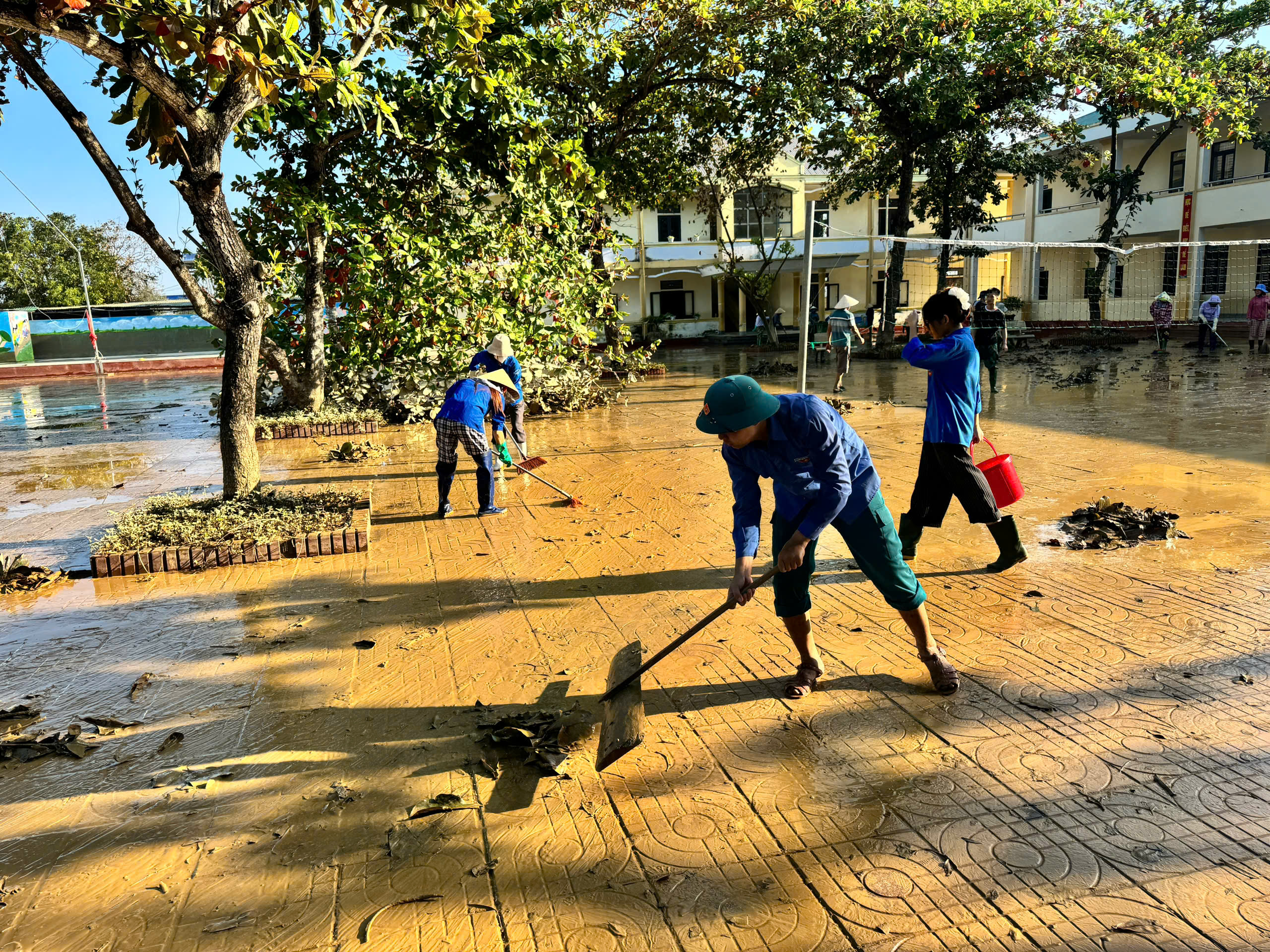 Đến ngày 4-10, nước ngập lụt tại một số địa phương ở tỉnh Hà Tĩnh đã cơ bản rút xuống. Với tinh thần “nước rút đến đâu dọn vệ sinh đến đó”, tranh thủ trời nắng, chính quyền các địa phương, lực lượng chức năng, các đoàn thể tiếp tục nỗ lực tập trung hỗ trợ người dân dọn dẹp vệ sinh môi trường trường lớp, khu vực dân cư, đường giao thông để sớm ổn định cuộc sống, sản xuất, đi lại, học tập.